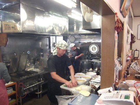 厨房の様子ですが(もちろん了解を得て撮影してます。)、ご主人と息子さんで切り盛り。