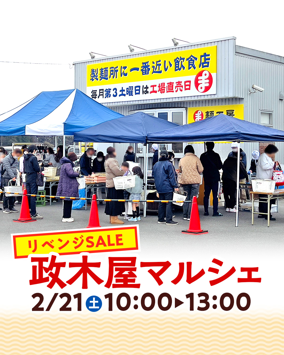 2/21(土)は 毎月第3土曜日恒例の 麺の工場直売会♬政木屋マルシェ!!